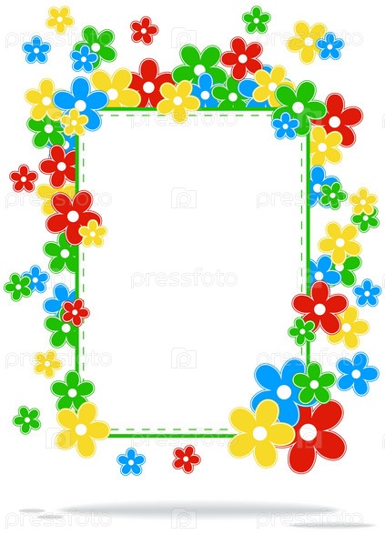 Открытка с яркими цветами и местом для текста на белом фоне с тенью