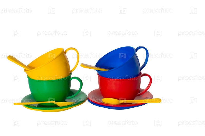 Детская игрушечная посуда, изолированная на белом фоне
