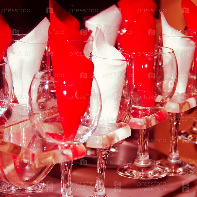 Бокалы для вина с бумажными салфетками внутри