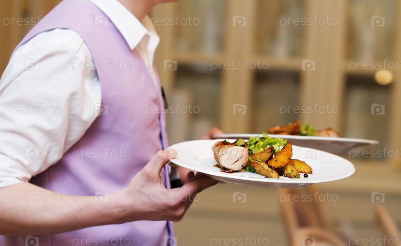 Официант с двумя блюдами