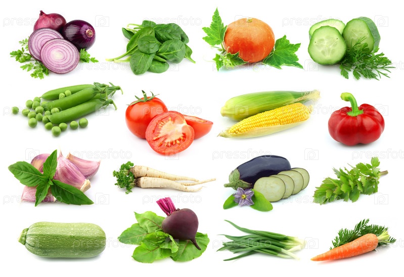 Коллаж из овощей на белом фоне