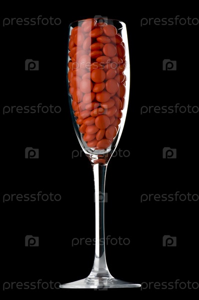 Объект на черном - таблетка на винном стакане