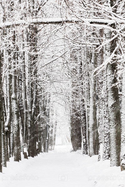 Деревья в снегу в зимний морозный день