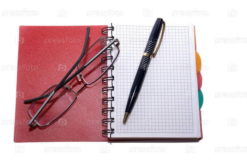 Записная книжка, ручка и очки