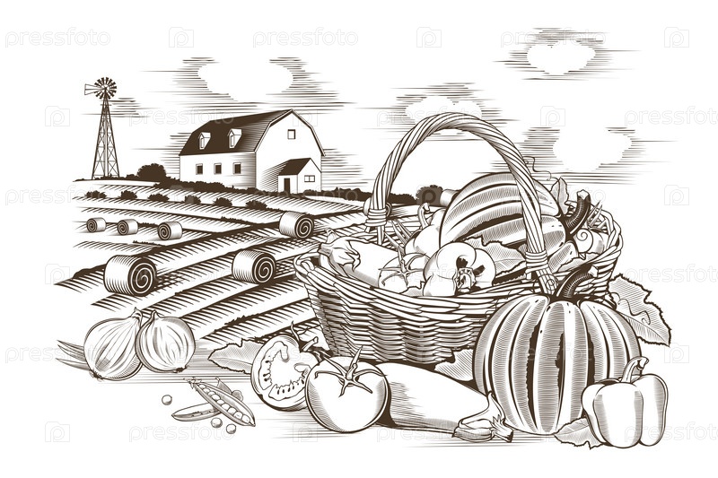Корзина овощей и ферма