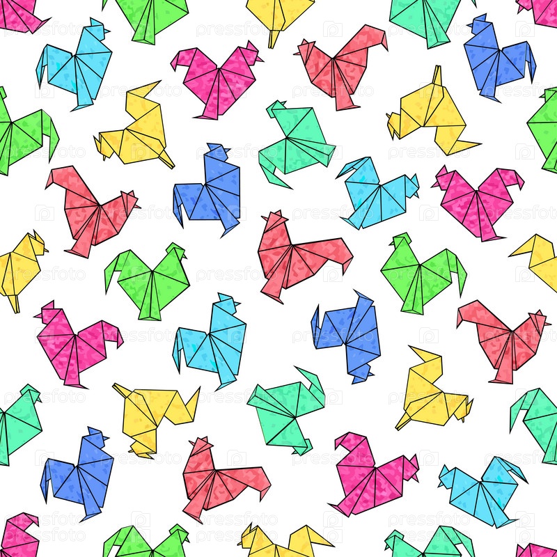 Бесшовныей фон с оригами петуха