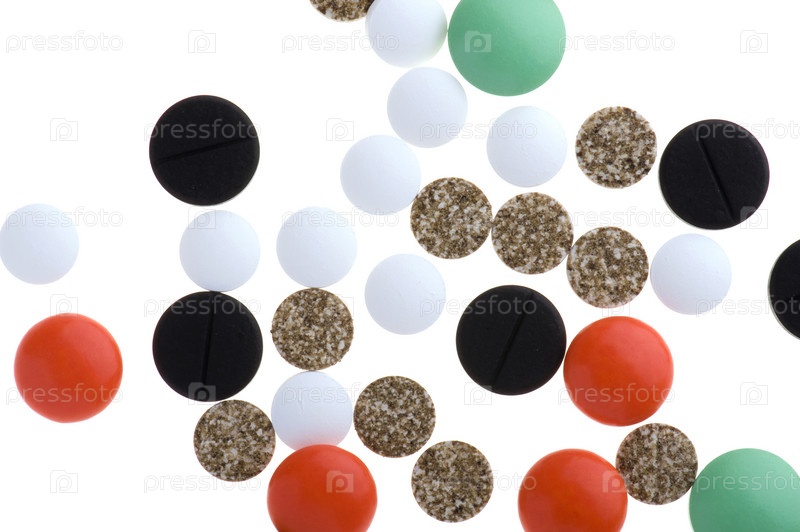 Разные таблетки на белом фоне