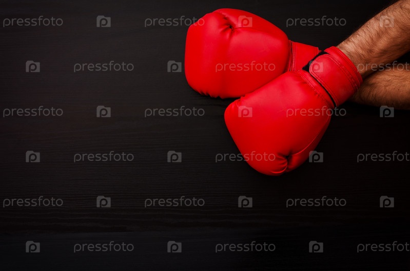 Две мужские руки в боксерских перчатках
