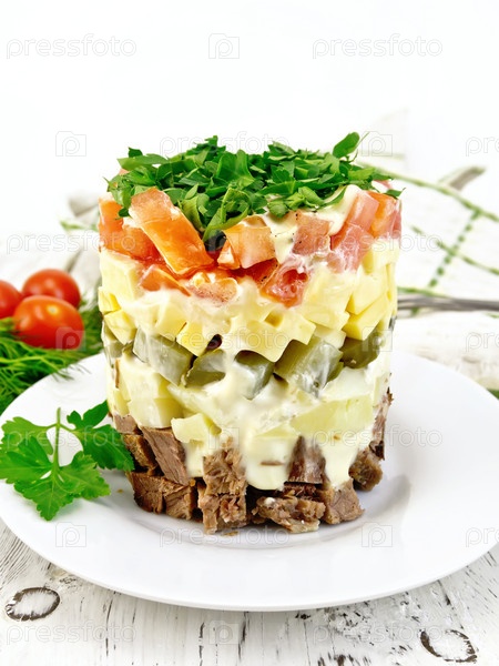 Салат с говядиной и помидором