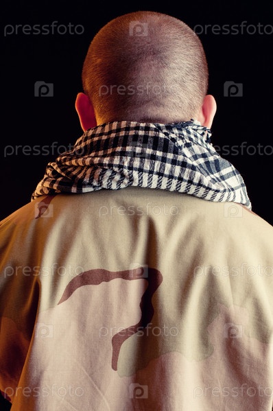 Солдат в камуфляже, стоящий спиной к камере