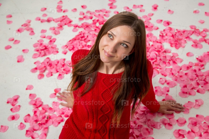 Молодая счастливая женщина в лепестках роз