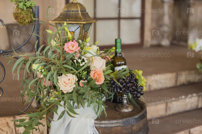 Бутылка вина и цветы