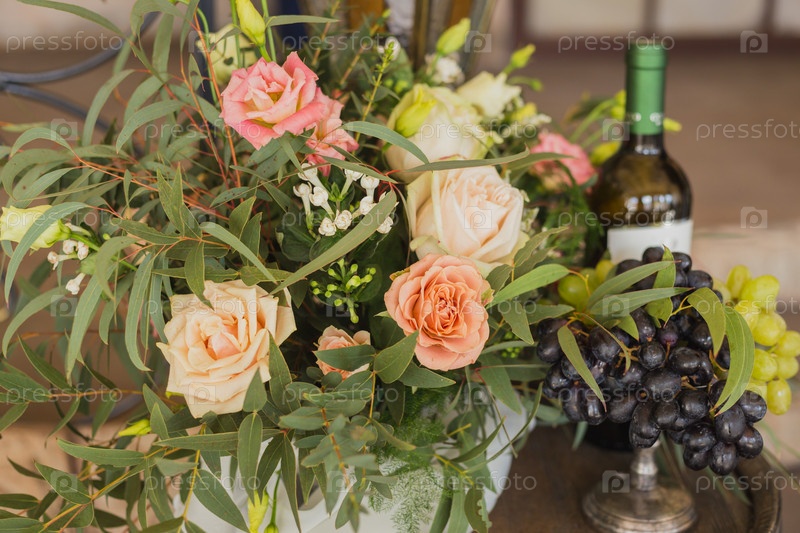Бутылка вина и цветы