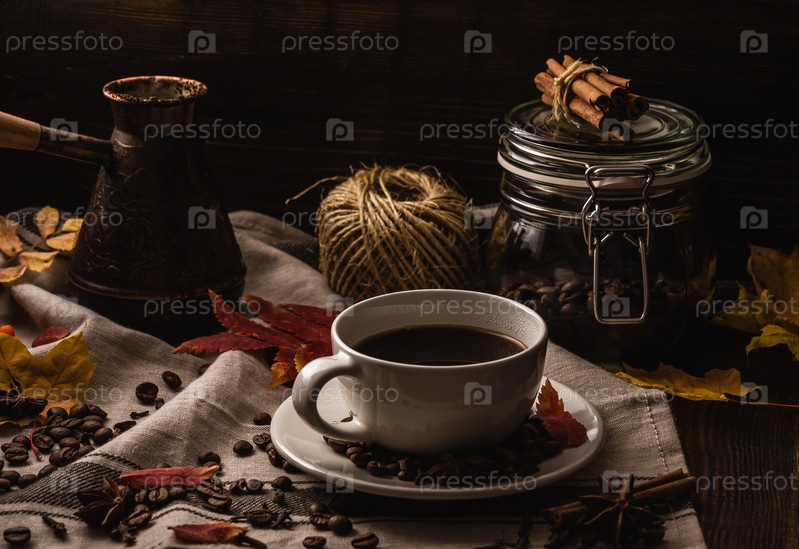 Чашка кофе с осенними листьями