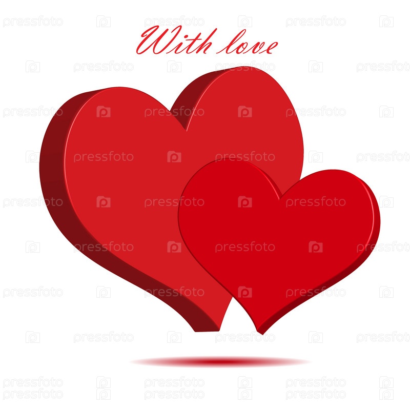 Два красных сердечка на белом фоне