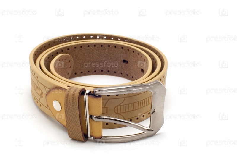 Кожаный ремень на белом фоне