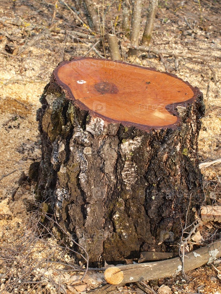Спиленное дерево, выделяющее сок