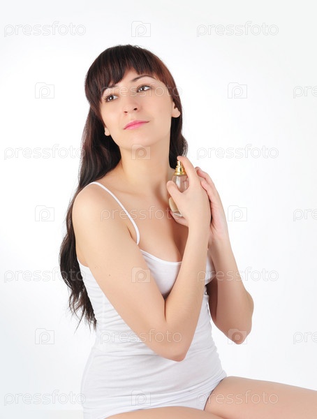 Девушка наносит духи
