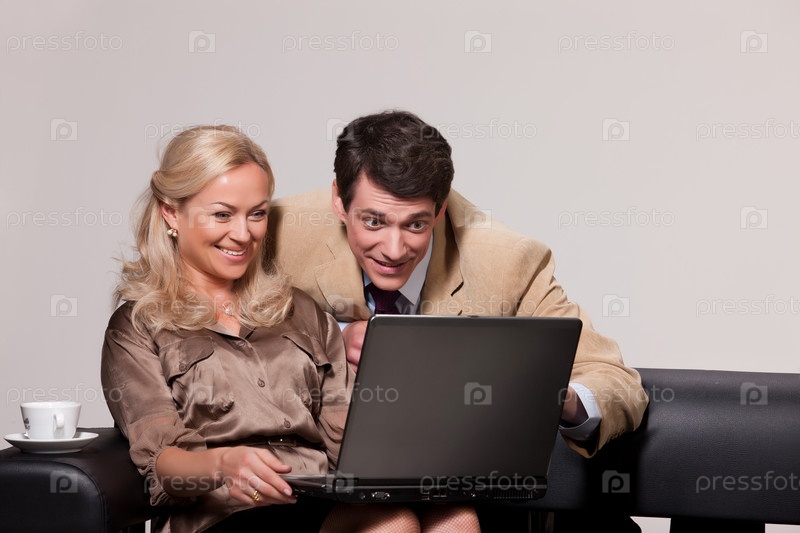 Женщина и мужчина за ноутбуком