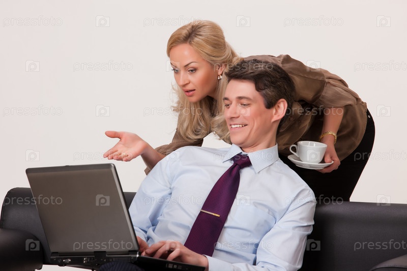 Женщина и мужчина за ноутбуком