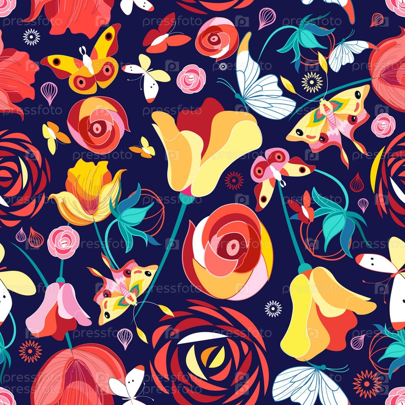 Цветочный узор и бабочки