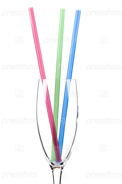 Объект на белом - стакан коктейля с соломинками