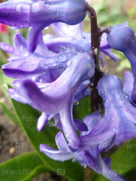 Синий гиацинт весной на клумбе
