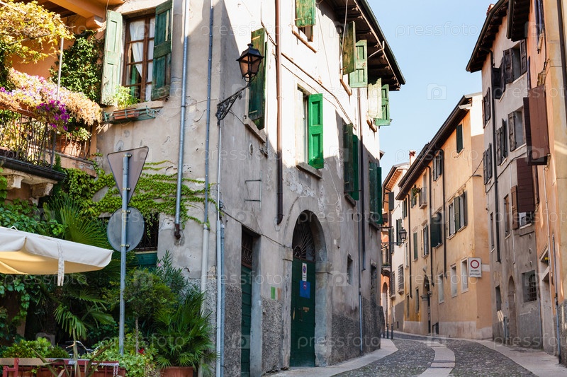 Старые дома на улице в городе Верона