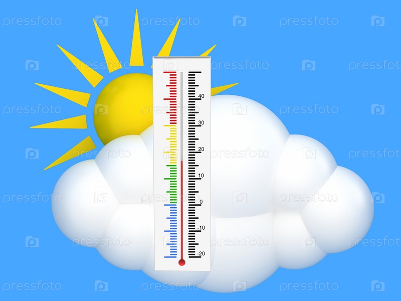 Термометр на фоне солнца и неба