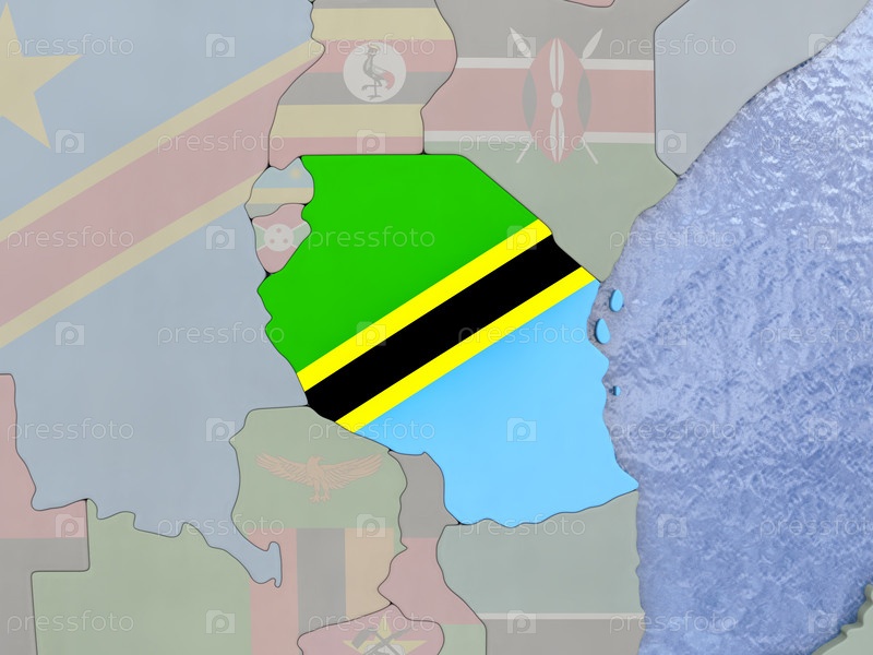 Танзания с флагом на земном шаре