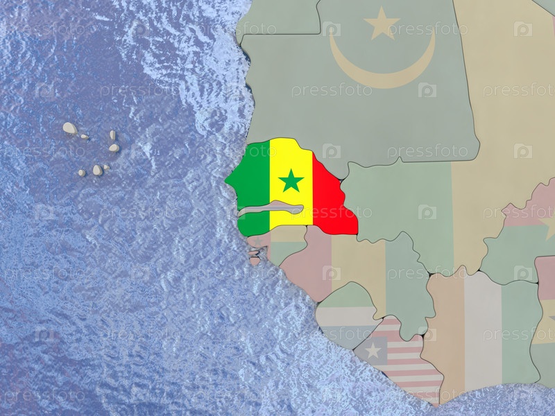 Сенегал с флагом на земном шаре