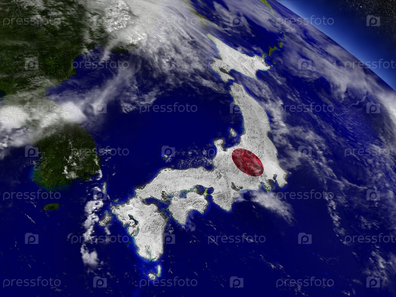 Япония с флагом на земле