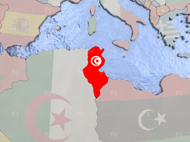 Тунис с флагом на земном шаре