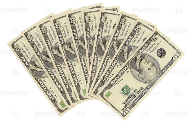 Веер из десятидолларовых купюр