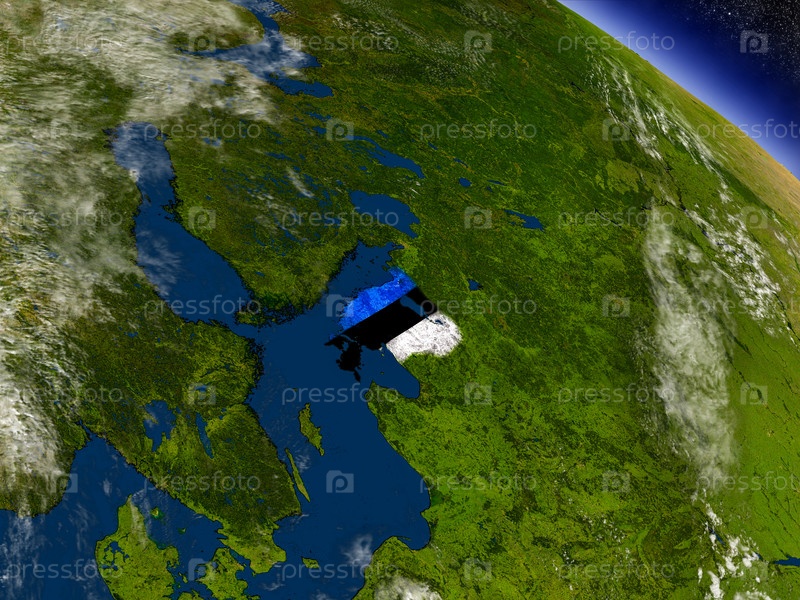 Эстония с флагом на земном шаре