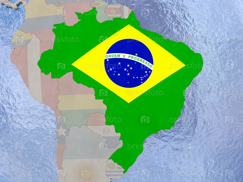 Бразилия с флагом на земном шаре