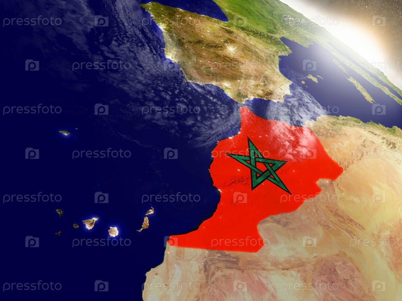 Марокко с флагом на земном шаре