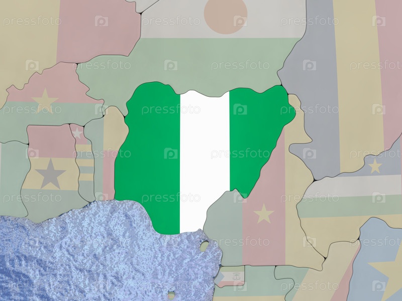 Нигерия с флагом на земном шаре
