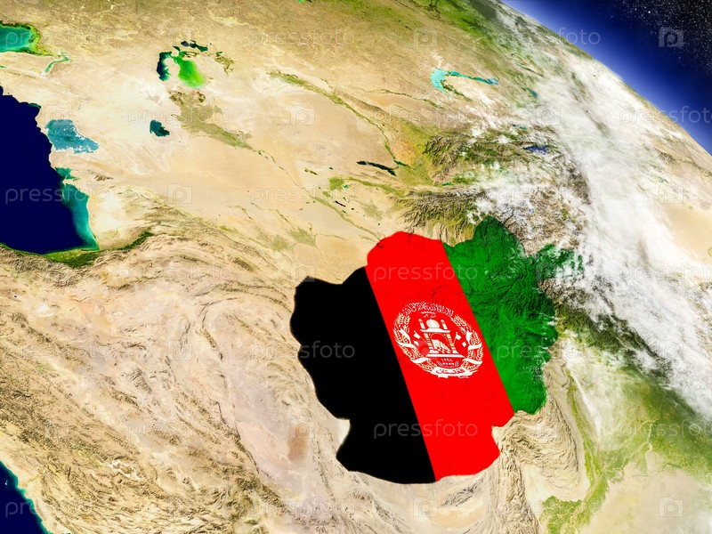Афганистан с флагом на земном шаре