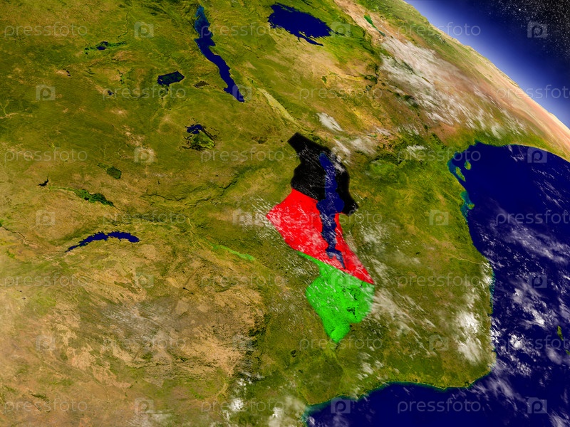 Малави с флагом на земном шаре