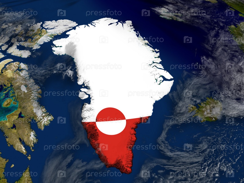 Гренландия с флагом на земном шаре
