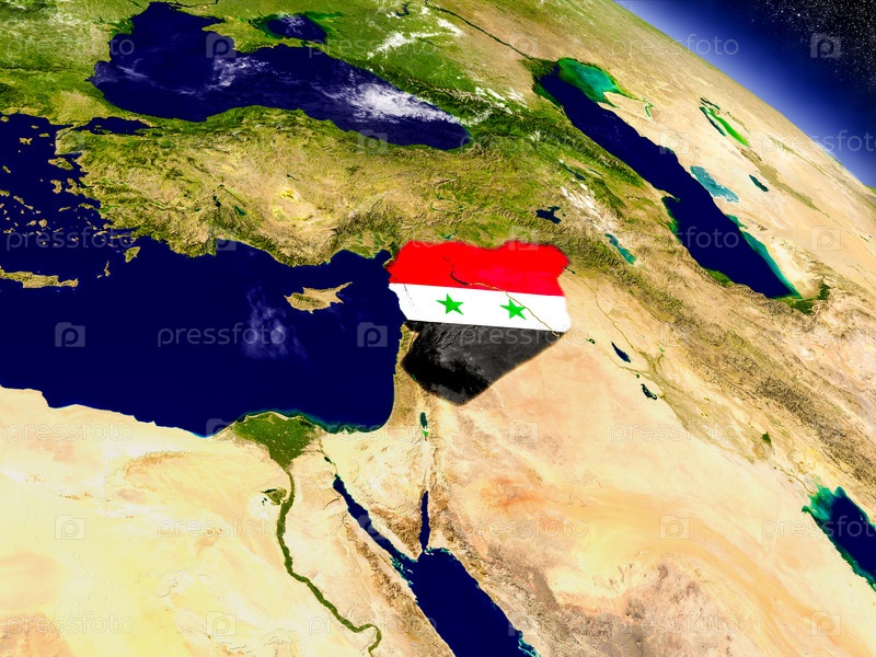 Сирия с флагом на земном шаре