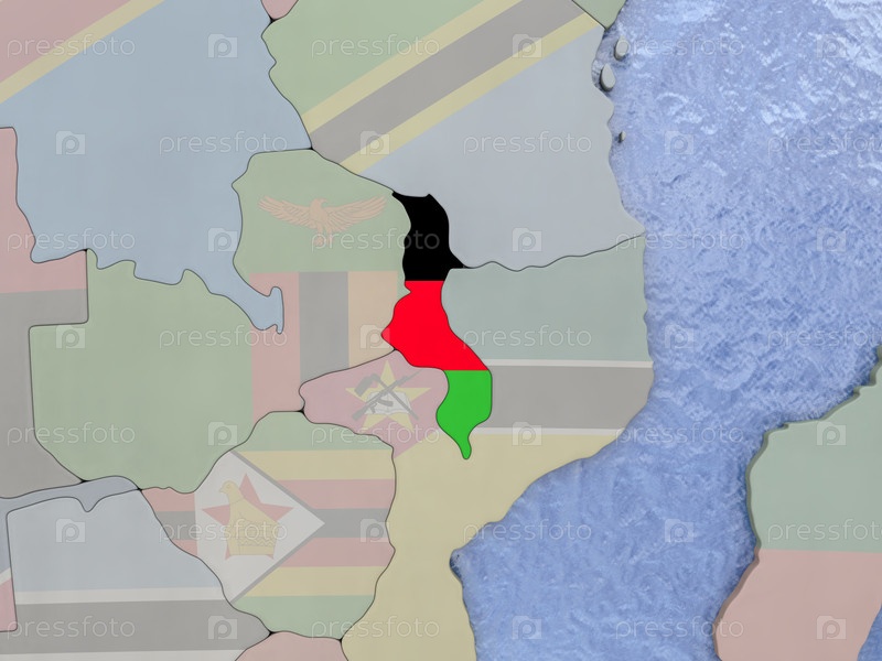 Малави с флагом на земном шаре