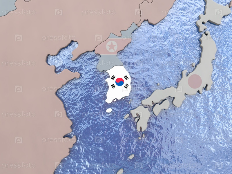 Южная Корея с флагом на земном шаре