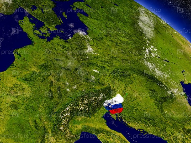 Словения с флагом на земном шаре