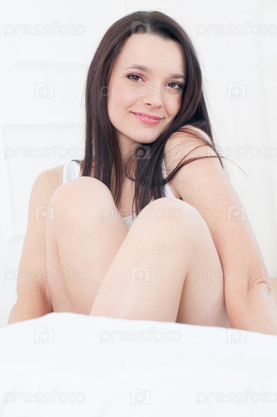 Привлекательная улыбающаяся молодая женщина в постели
