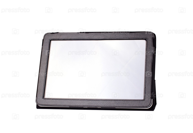 Планшетный компьютер в чехле, изолированный на белом фоне