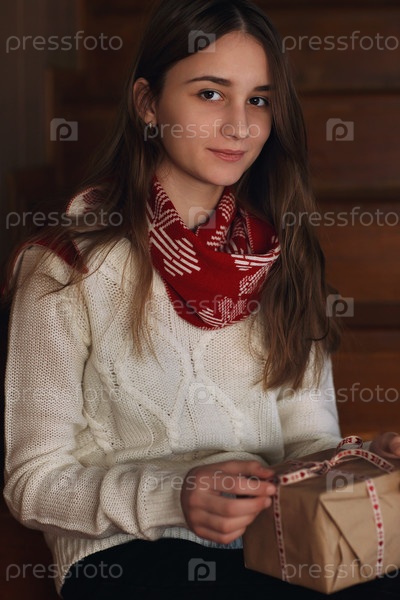 Портрет красивой девушки с подарком