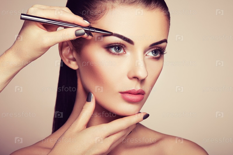 Красивая брюнетка рисует брови