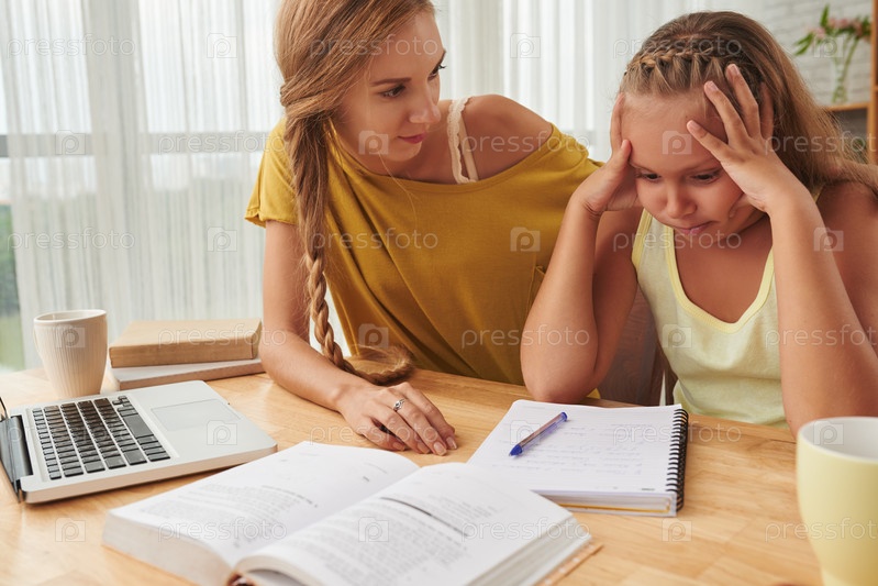 Мать пытается успокоить дочь